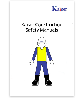 To elminate safety hazards, Kaiser disseminates to all staff safety manuals complete with photographs and orders for every stage of construction. Site staff must take their manuals with them and follow all regulations.